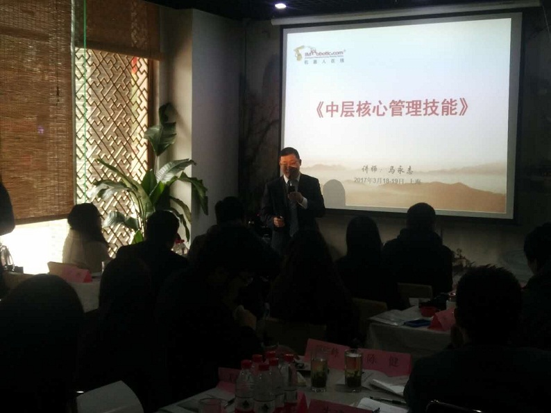 2017年3月18-19日,中國機器人行業的領先門戶——機器人在線公司針對公司的中高層管理者組織了一次管理課程短期培訓班——中層管理者的核心技能,影響力集團金牌講師馬永志老師為30多名中高層主管做了精彩的培訓。培訓中馬老師深入淺出地講解了1.中高層管理者角色定位認知。2.卓越管理者組織溝通與會議管理。3.目標管理的步驟與方法。4.團隊成員的選用育留策略等并結合具體案例講解團隊成員的輔導與激勵念……深入淺出、娓娓道來,在學員中間產生了廣泛的共鳴,贏得了在場全體學員熱烈的掌聲。