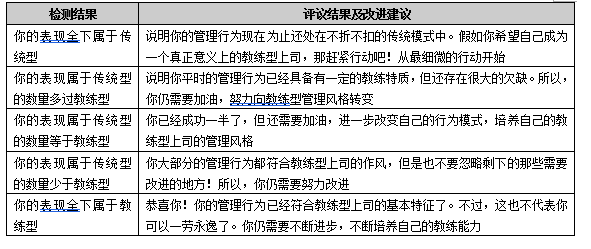 | 從不給員工答案 | 喜歡給自己過去類似成功經驗的答案 |